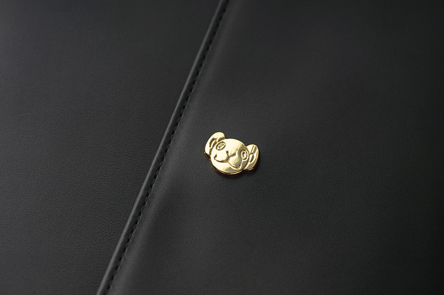 The trifold cover uses genuine leather that’s black and smooth to the touch. The cover has a chic design that matches well in any setting.The cover exterior is solid black and accented with a gold-colored button shaped like the face on the Going Merry ship.