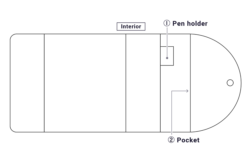 The features on the interior are made as simple as possible. The pen holder is designed to store the pen body. This cover doesn’t come with a bookmark, so please use the bookmark on the 5-Year Techo itself, or a bookmark of your choice.