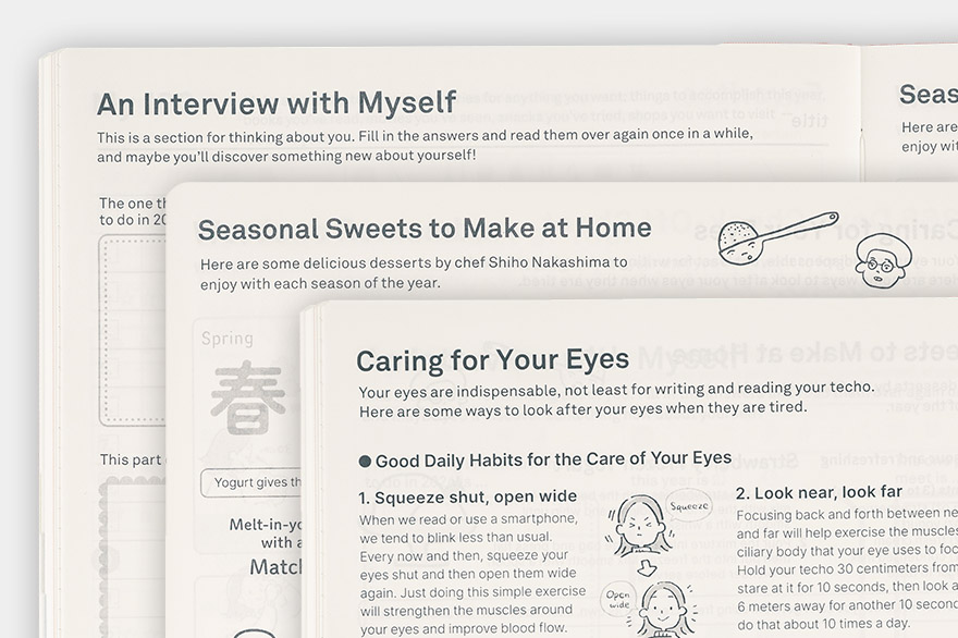 | Bonus Pages | Time Table / Graph Paper / Favorites / My 100 / An Interview with Myself / Seasonal Sweets to Make at Home / Caring for Your Eyes / Words to Remember / 365 Days Check-Off Sheet / Looking Back at the Year 2024 / Getting the Most Out of Your Hobonichi Techo / Gifts / Addresses / Personal Notes |
