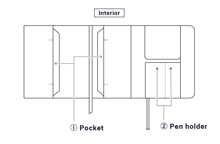 When you unravel the cover, you’ll find pockets to store your favorite pens and stationery. They come with a stopper, so your items will stay safely inside the cover even when it's tipped upside down.