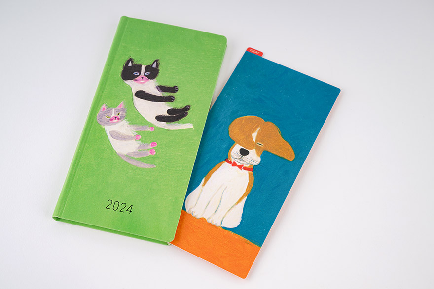 There are many more items for our collaboration with Keiko Shibata! The techo covers are the A6 size “Bread floating in the wind,” the A5 size “Gentle breeze in a dandelion field,” and the Weeks size “Fluffy floating kittens“ designs. The Hobonichi Pencil Board comes in three sizes: the A6 size “Upwind alpacas,” the A5 size “Swaying tulips,” and the Weeks size “Wind gust during a Stay command” designs. The Hobonichi Plain Notebook comes in two sizes, A6 and A5, in the “Who is it?” design. You can also enjoy Keiko Shibata’s original letter paper, message card, and letter set. All the items are unique and charming enough to experience the world of Keiko Shibata.