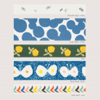 The “minä perhonen” series mt washi tape offers the characteristic warmth that can only come from hand-illustrated designs. The tape comes in a total of 13 designs, including the staple designs such as “tambourine,” “choucho” and “hana hane,” as well as “run run run” which shows a line of rabbits darting across the tape, “kuro-neko” designed in the style of stamps pressed on, “pesce” which illustrates fish graphically, “flutter” which lines up colorful butterflies, and “bloom” which shows colorful flowers blooming.