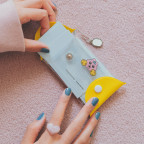 This is a card case with the design of “Opanchu Usagi,” a popular character created by illustrator KAWAISOUNI! It is a transparent item that allows you to see what is inside. In the middle is an illustration of Opanchu Usagi with pom-poms, and the “Opanchu Usagi” logo is foil-pressed in silver. The design on the back is the same as “Opanchu Usagi (Stationery),” with Opanchu Usagi in various styles and illustrations of stationery, such as pencils and erasers.
