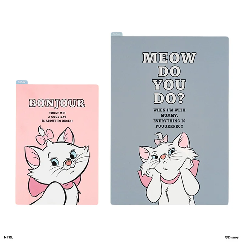 The Aristocats pencil boards come in three sizes: A6, A5, and for the Weeks. The designs feature the cute expressions and poses of Marie from the 1970 Disney Animation film The Aristocats. The back of each size pencil board has a different background color to give it a feel different from that of the front.