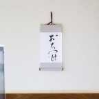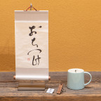 This is a hanging scroll that allows you to take in the spirit of “Ochitsuke” in your daily life. It will calmly watch over yourself, your family, your coworkers and your friends at at moments when you tend to rush or get carried away by emotion. Its compact size (W: 175mm x H: 320mm / W: 6.9" x H: 12.6") allows you to place it where it will always be within eyesight, such as your living room, entrance, or by your desk. Hang it up by hooking its string on a hook or push pin.