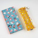 On the front side is the pattern of Opanchu Usagi’s face. The Opanchu Usagi in various expressions scattered throughout will give you a cheerful feeling. In the center, the “OPANCHU USAGI” logo is foil-pressed in silver. The transparent design enables you to see not only the pens inside but also the bright yellow color of the back side of the pen case through the pattern, making it look very lively.