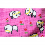 This towel uses pile fabric for one side of the fabric, and a double gauze for the other. It is more thin and light than towels that use pile fabric on both sides.
