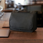 The lid opens wide, so even if you keep a lot of items in the pouch, you can still see what's inside. There's also a handle that makes it convenient for carrying around.