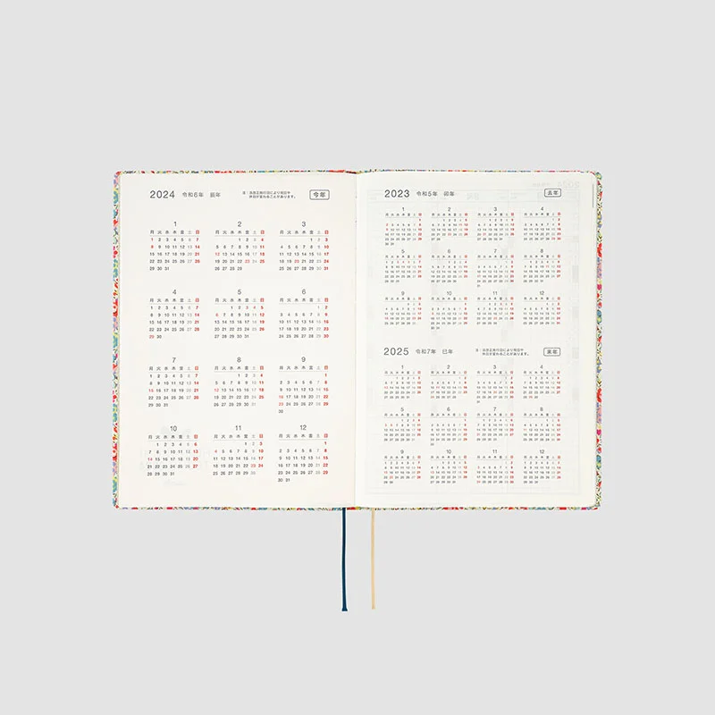 | Listed Information | Day of the year / Week of the year (listed on monthly calendars and weekly pages) / Old lunar calendar / Rokuyo (traditional Japanese lunisolar calendar) (listed on monthly calendars) / Solar terms / Japanese holidays / Moon phase (daily pages include every phase, monthly calendars and weekly pages only include full and new moon) |