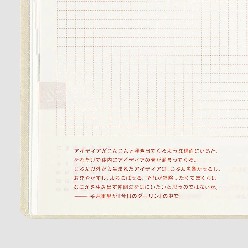 | Bonus Pages | Time Table / Graph Paper / Favorites / My 100 / An Interview with Myself / Seasonal Sweets to Make at Home / Caring for Your Eyes / Words to Remember / 365 Days Check-Off Sheet / Getting the Most Out of Your Hobonichi Techo / Gifts / Addresses / Personal Notes |