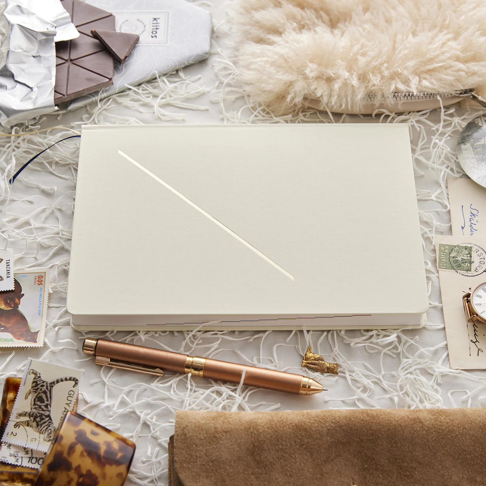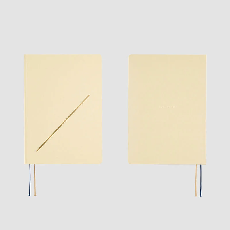 Slash (Ivory) is a new color that has been added to the basic design options for the HON. The soft ivory cover has a diagonal slash foil-printed in gold.