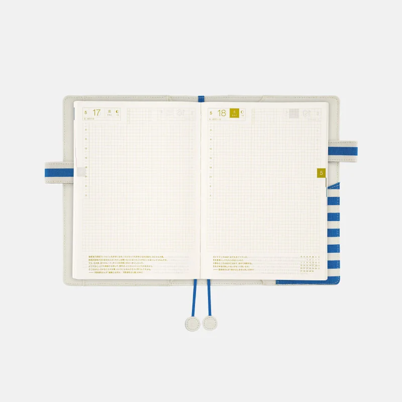 | Bonus Pages | Time Table / Graph Paper / Favorites / My 100 / An Interview with Myself / Seasonal Sweets to Make at Home / Caring for Your Eyes / Solar Terms / Emergency Preparedness / Gifts / Age Table / Conversion Chart / Getting the most of Hobonichi / Addresses (for 8 people) / Personal Notes |