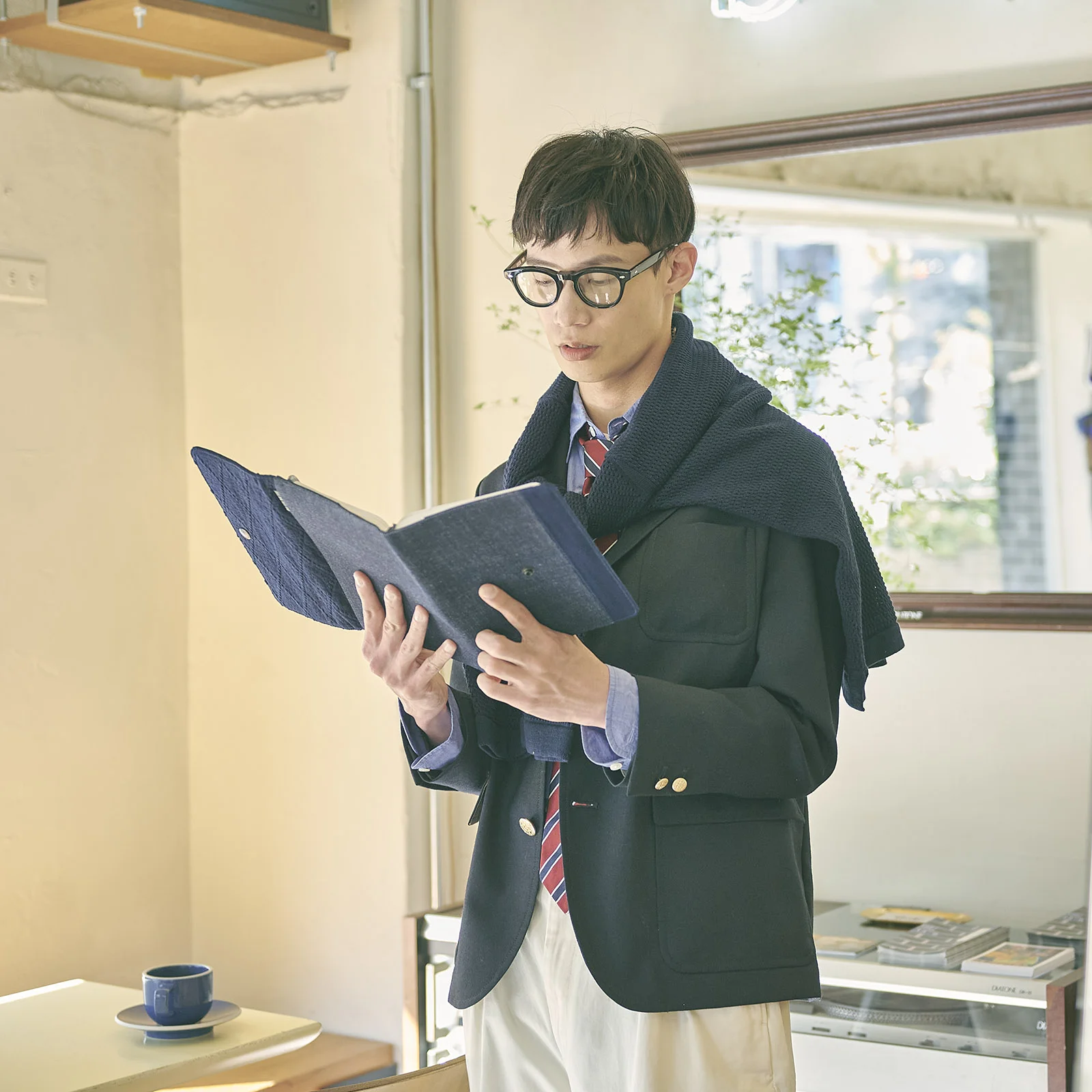 In the early 1980’s, Blue Blue debuted as a maker of denim shirts. They focused on the color indigo blue and denim that transformed over time with extended use. This cover combines durable denim Blue Blue material with traditionally crafted “Sashiko” material so users can enjoy the two different textures together.