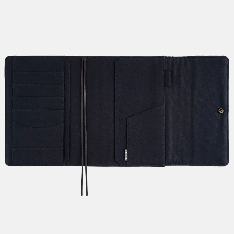 When you open the cover, you can see the Indigo German Cloth that Blue Blue is famous for. It’s a strong, resilient material also used in military jackets.