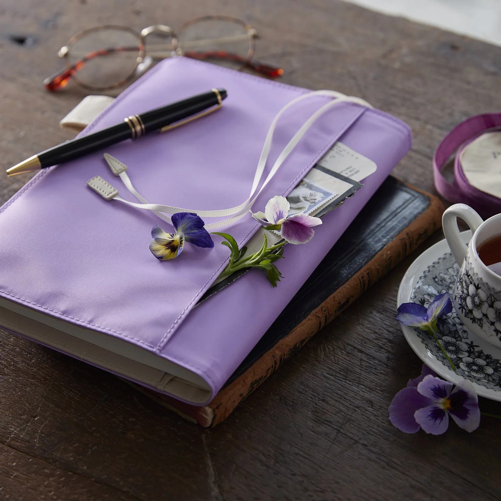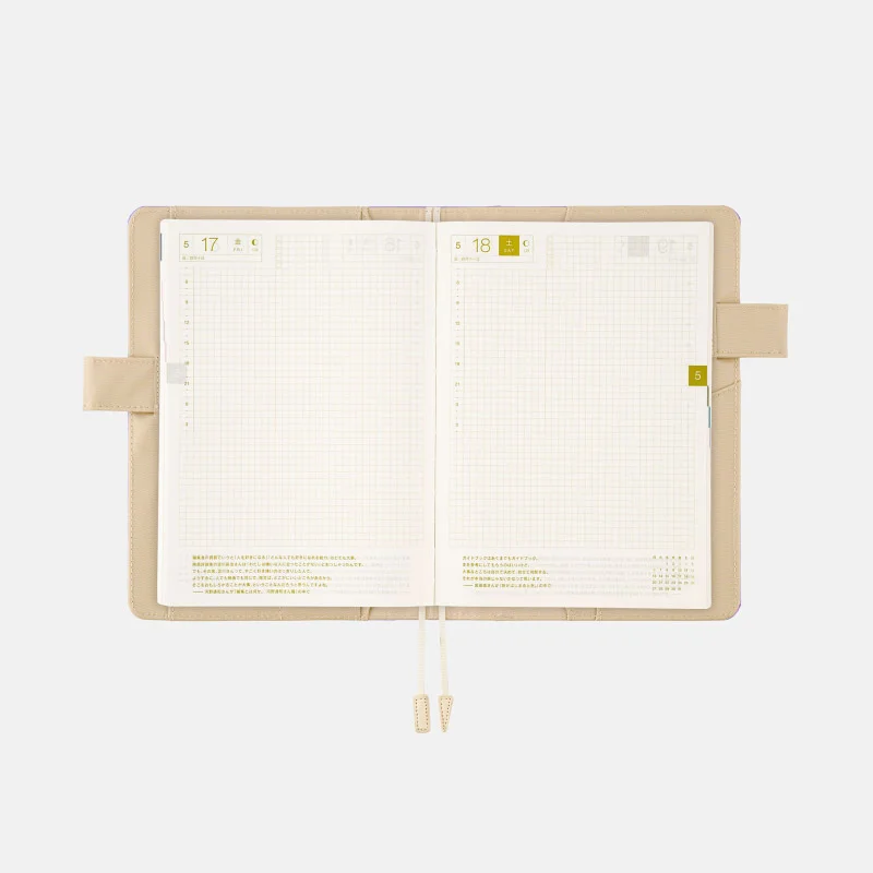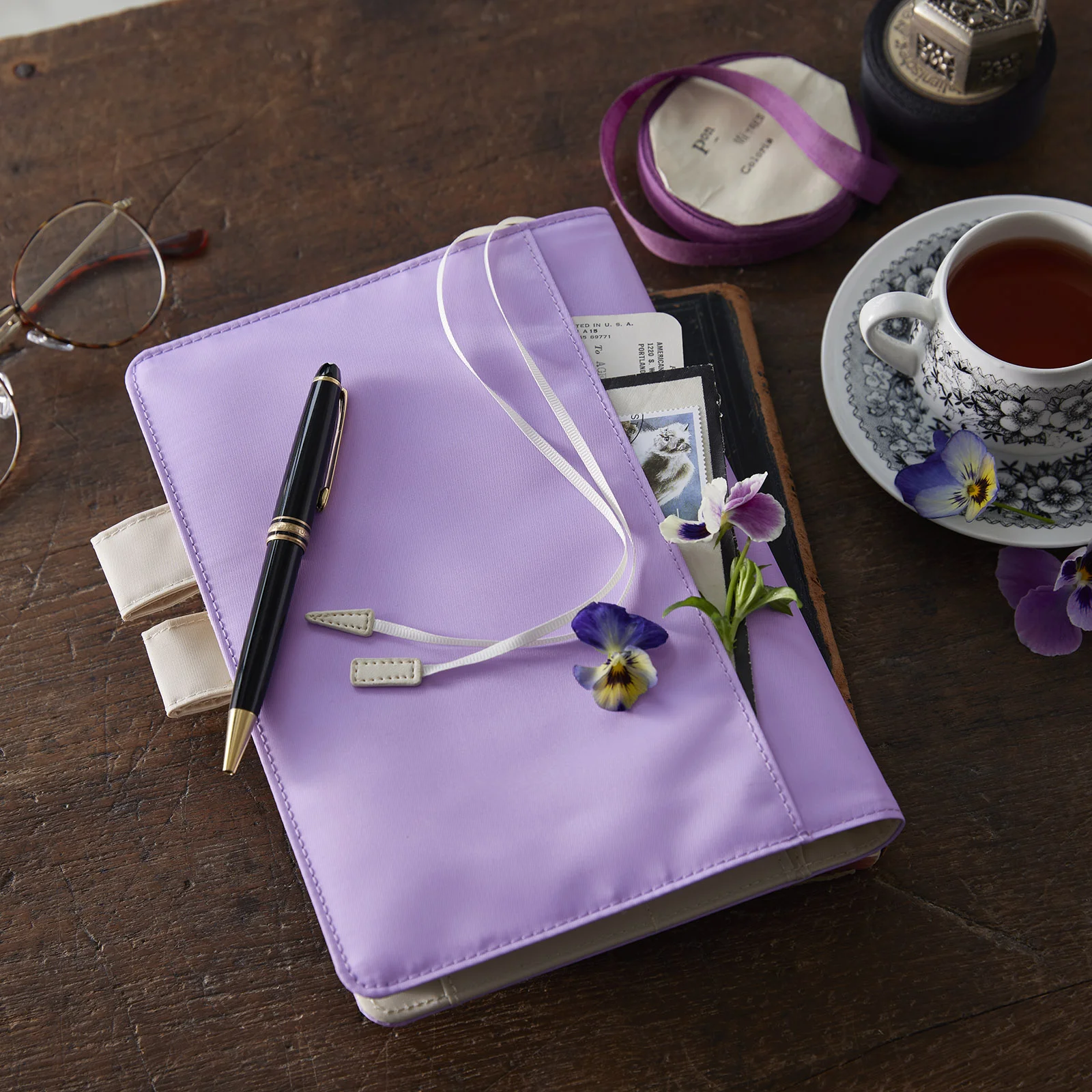 The soft light purple color of “Violets” reminds you of violet flowers. We selected pale beige for the “butterfly-stopper” pen holders and the inner cover for an elegant impression. This cover will help you feel calm and relaxed whenever you pick up your techo.