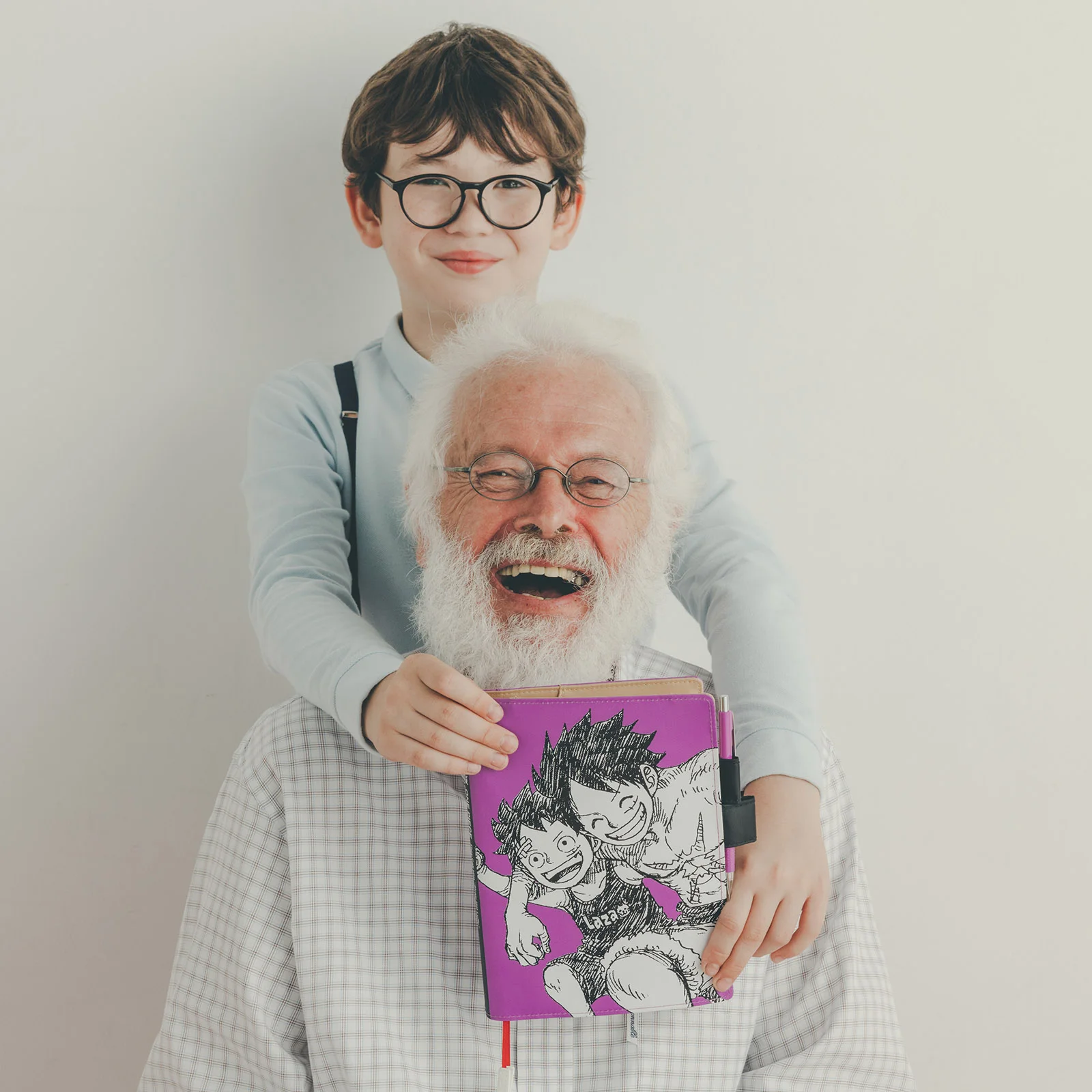 Straw Hat Luffy (Purple) is a techo cover that lets you spend your year with Luffy, who is always excited and ready to go no matter what kinds of difficulties or formidable enemies he encounters. The artwork was drawn by creator Eiichiro Oda specially for ONE PIECE magazine. There’s a drawing of young Luffy with a fun grin on his face next to a grown Luffy in the vibrant, silkscreen-printed image.