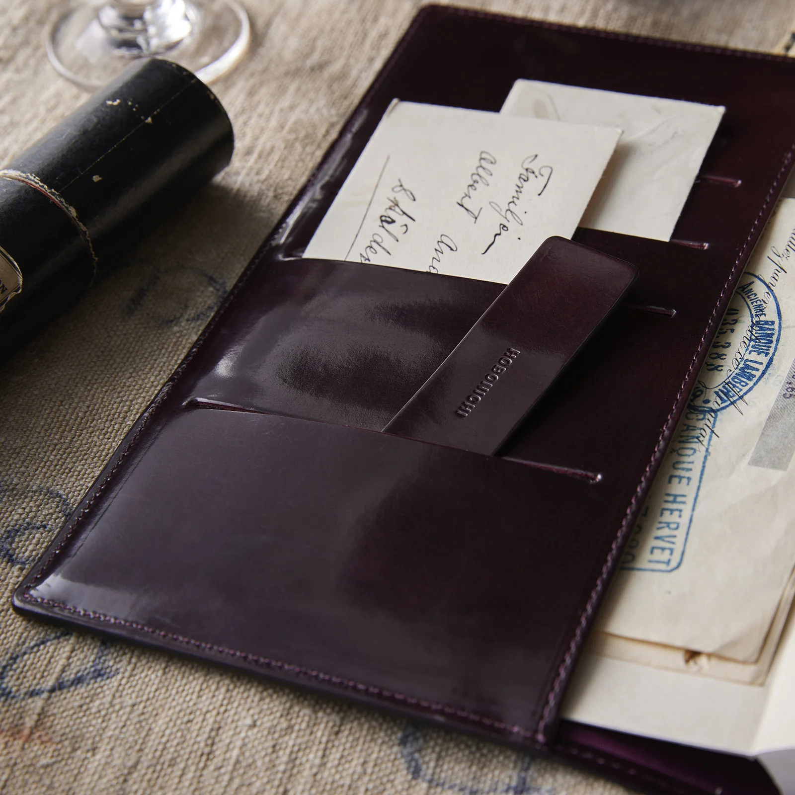 Slim cuts into the leather interior allow it to hold cards the size of a credit card or business card. The pen hook on the right side is designed to hold a pen by its clip.