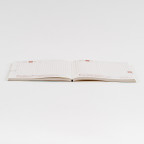 The book has the same thread-stitch binding as a dictionary, allowing it to lay flat without having to hold it down, providing a comfortable writing experience.