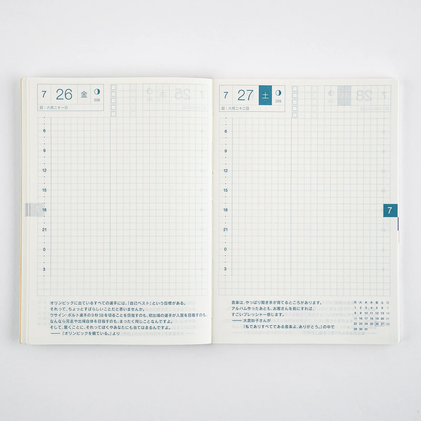 The Original Avec splits the Japanese A6 size Hobonichi Techo Original, design and all, into books of six months each with only slight variances in calendar spans and the number of extra pages in the back. This allows you to fill the pages to your heart’s content with scheduling, diaries, little notes, tickets, photographs, doodles, and anything that strikes your fancy.