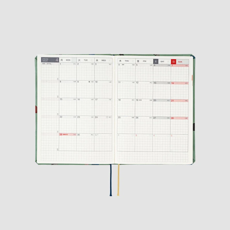 | Paper Type / Binding | Thin, light Tomoe River S paper resistant to bleeding and designed for planners / Stitch-binding |