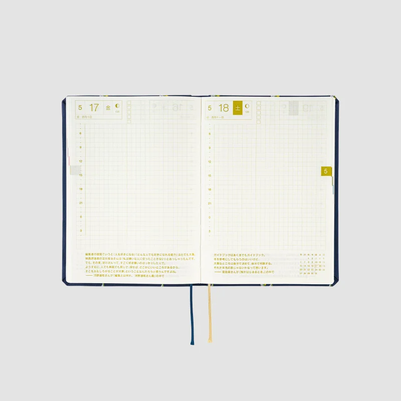 The Hobonichi Techo HON has a hardcover design already attached to the book. It’s designed to make you feel like you’re carrying around a favorite book, which you can pull out at any time to make notes no matter where you are. The book has A6 size pages and features a page per day, so the contents are the same as the Hobonichi Techo Original.
