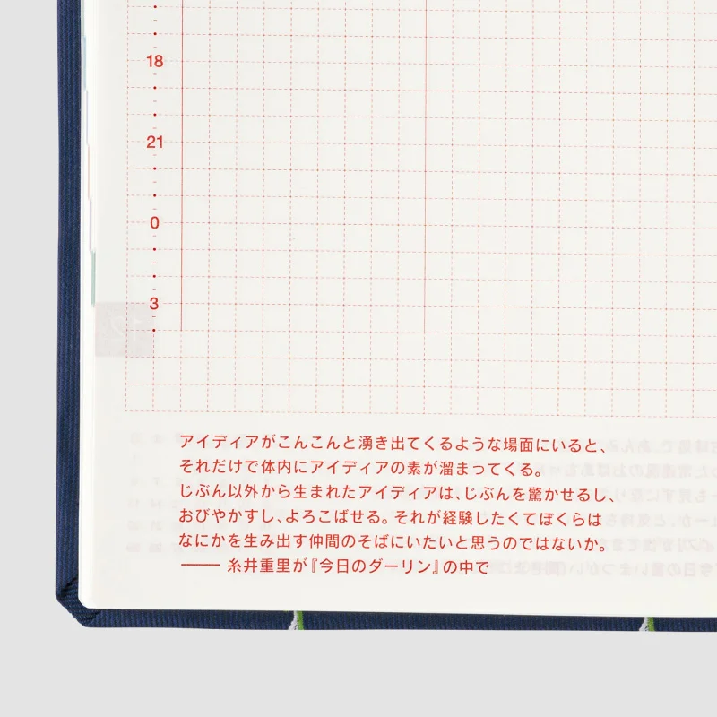 | Bonus Pages | Time Table / Graph Paper / Favorites / My 100 / An Interview with Myself / Seasonal Sweets to Make at Home / Caring for Your Eyes / Solar Terms / Emergency Preparedness / Conversion Chart / Getting the most of Hobonichi / Gifts / Age Table / Addresses (for 6 people) / Personal Notes |
