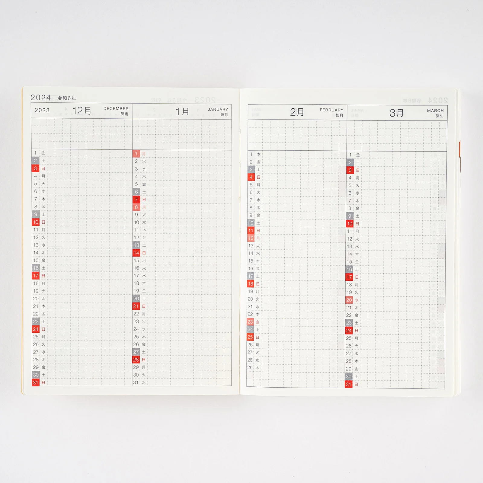 This original form of the Hobonichi Techo has been loved by many users since its introduction in 2002, and the 2024 edition marks the techo’s 23rd year. Its daily pages offer plenty of space to fill despite the book’s compact A6 size. The graph paper offers an open layout for you to neatly lay out writings, clippings, and drawings.