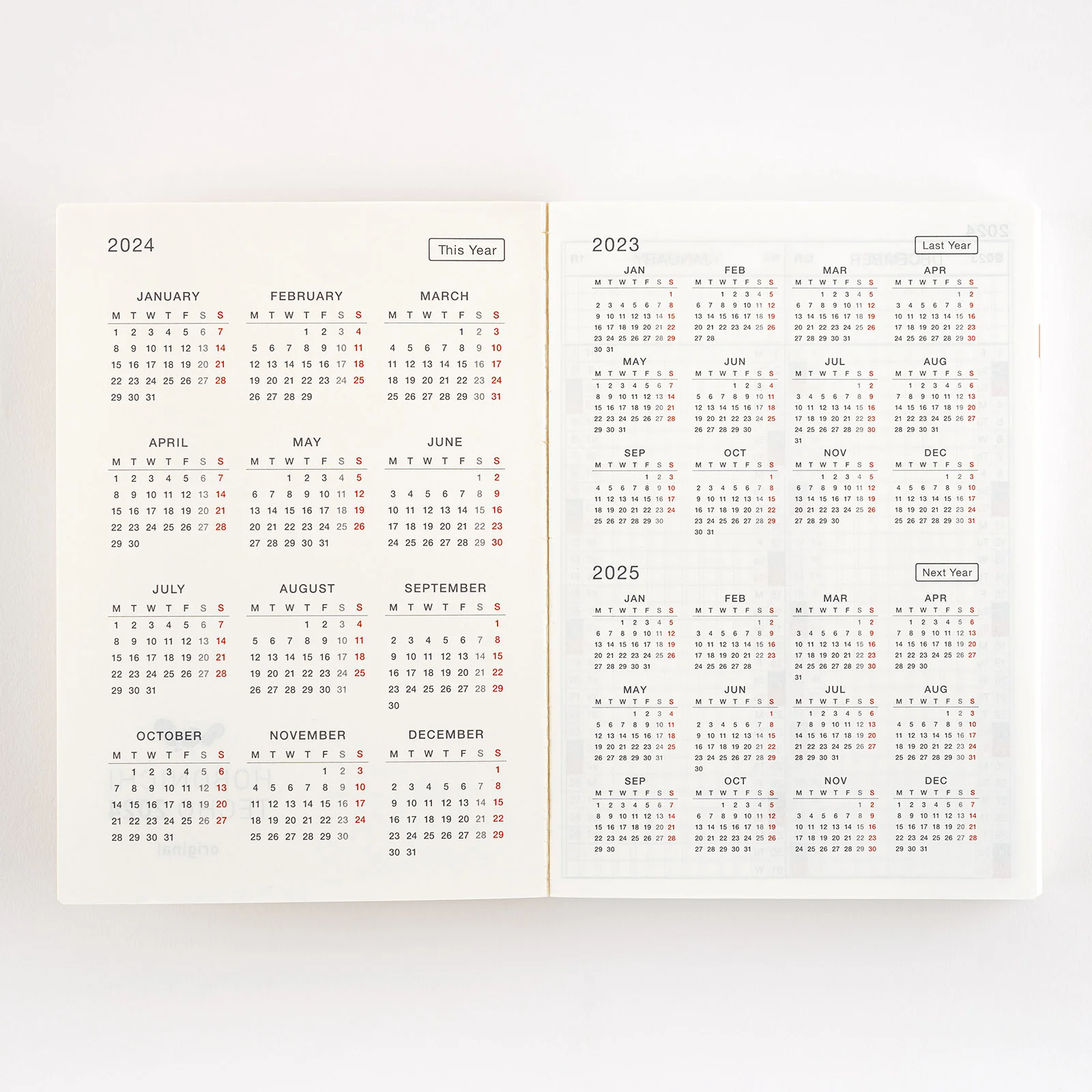 Other than the daily pages with lots of space to write, the book contains several sections that are great for schedule management, such as a yearly calendar, monthly calendar, and yearly index page. The back of the book has bonus pages that were chosen for the English edition book such as Words to Remember, 365 Days Check-Off Sheet, Looking Back at the Year 2024 and Getting the Most Out of Your Hobonichi Techo, as well as those included in the Japanese edition books. In anticipation of the English edition being used in various countries around the world, the calendars do not list holidays.