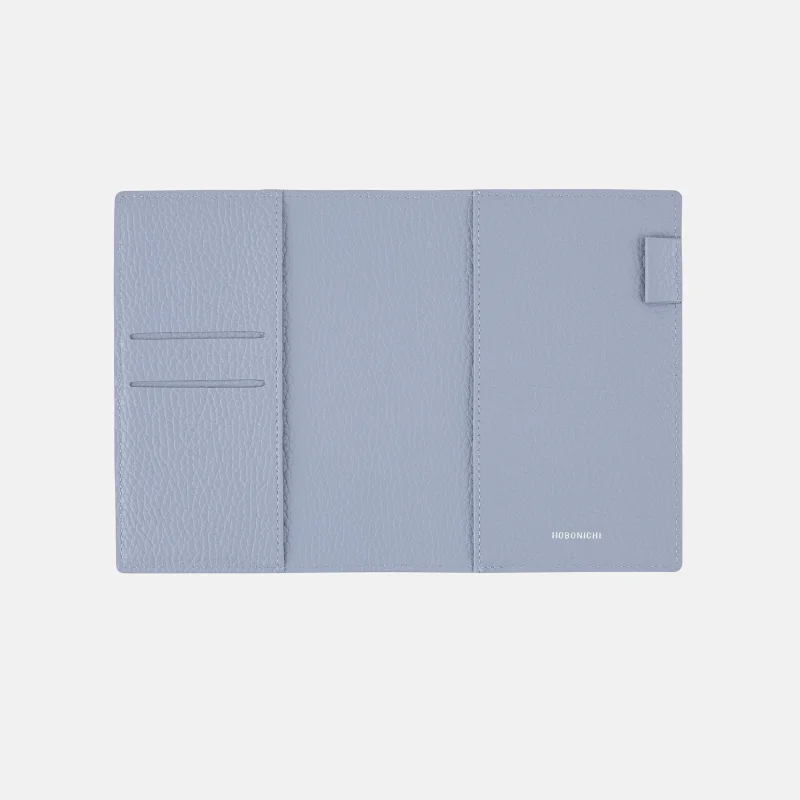 This leather design is specially designed to fit snugly around your Hobonichi Techo book while keeping it slim and comfortably portable. It does not contain butterfly stopper pen holders, and pockets are kept to a bare minimum. We offer this cover in a new color every year, and the 2023 edition features a celeste blue color reminiscent of a clear sky.