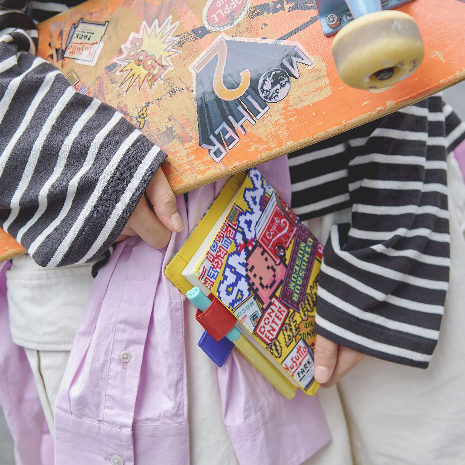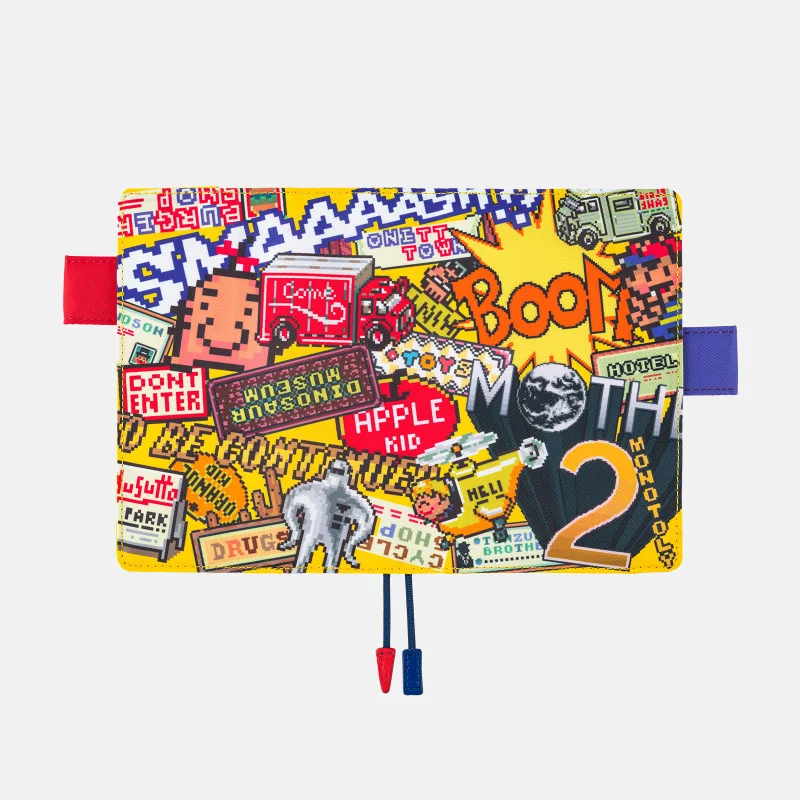 Original A6 cover Attention!, Cousin A5 size cover Boing!, Hobonichi Techo HON “EarthBound Beginnings” hardcover book in A6 size and A5 size, and the Summers design for the Weeks.
