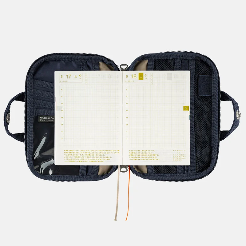This Hobonichi Techo cover was created in collaboration with Porter. It’s a practical cover that is as if you’re carrying a small bag when you go for a stroll. The two handles allow you to carry your techo with items you want to use that day casually. The bonded material of this cover is Porter’s characteristic light and soft nylon, with a beautiful sheen.