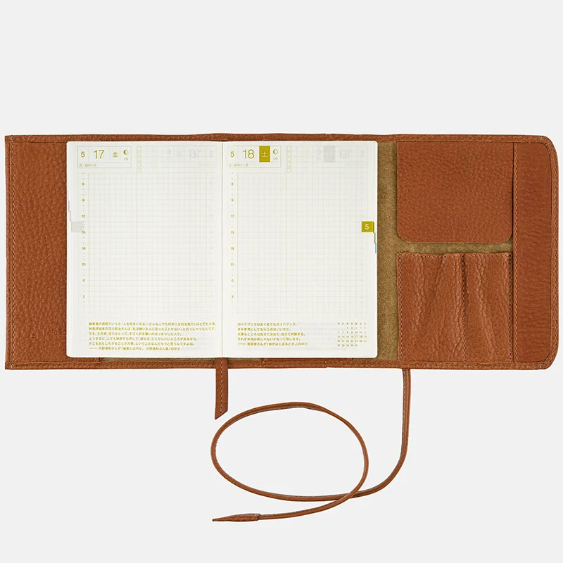 The leather is an oil natural leather from Tsuchiya Bag Factory’s "tone oil nume" series that has been enjoyed for a long time. The moist, soft leather will fit well into your hands and will mature as you use it to become even softer with an added sheen. You will be able to enjoy the charms of a leather cover to its fullest, making this cover the perfect choice for anyone purchasing a leather product for the first time. The color is a relatively bright brown that’s appealing to every demographic.