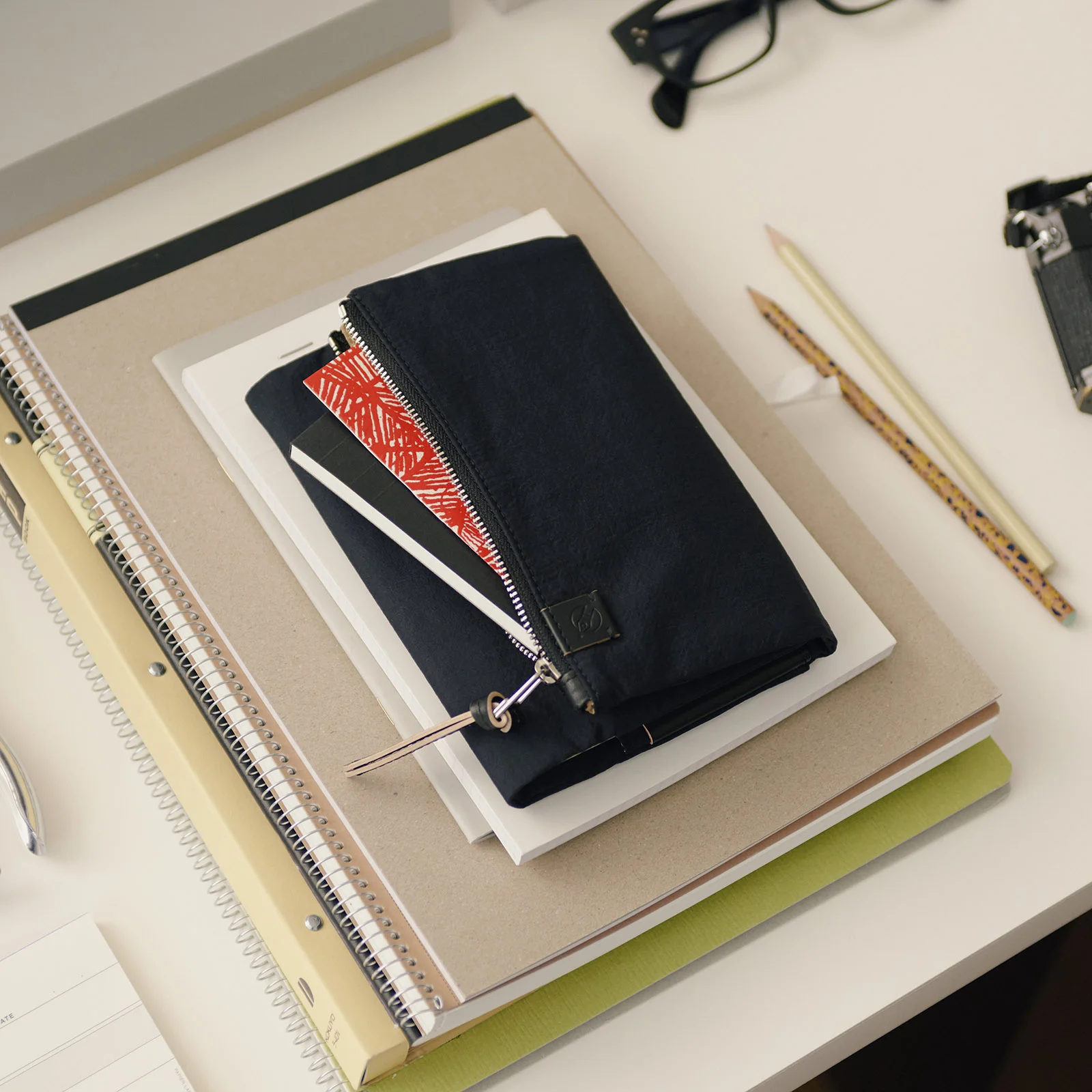 The gusseted pocket with a zipper closure provides enough storage to carry as many pens and necessary utensils as you like.