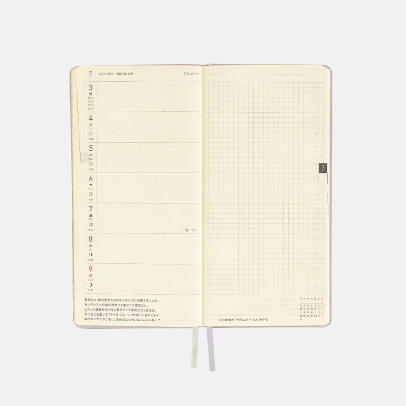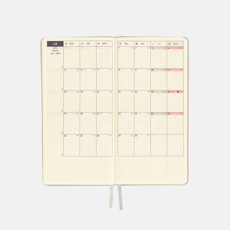 | Paper Type / Binding | Thin, light Tomoe River paper resistant to bleeding and designed for planners / Stitch-binding |