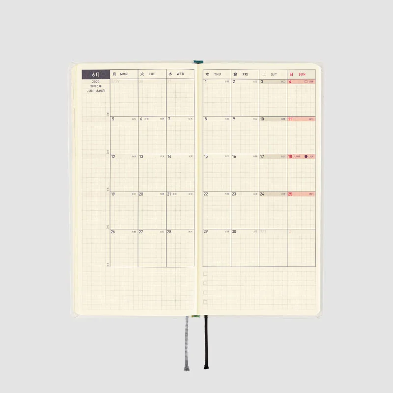 | Paper Type / Binding | Thin, light Tomoe River paper resistant to bleeding and designed for planners / Stitch-binding |