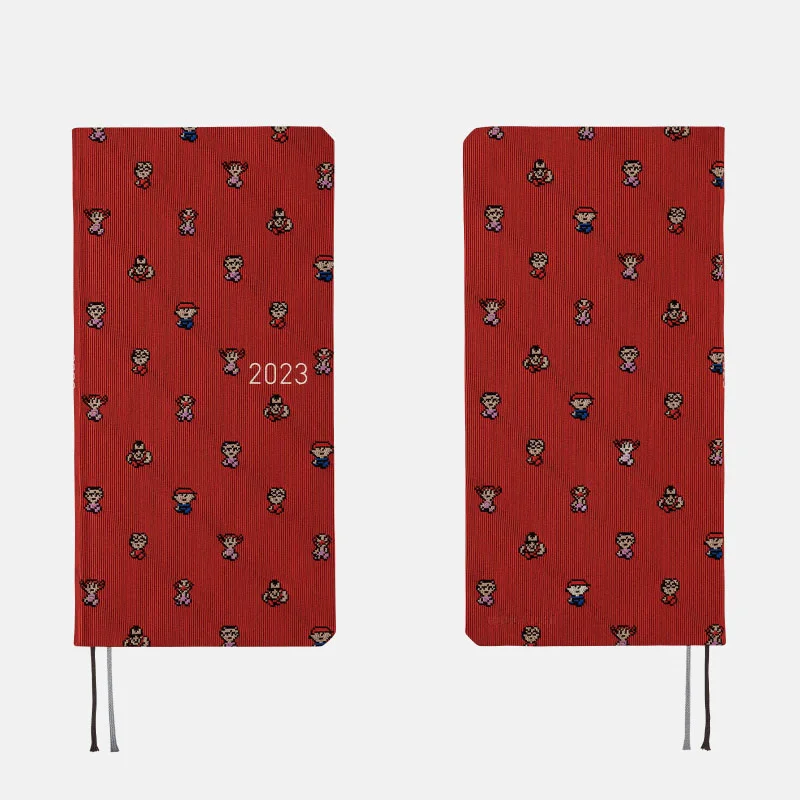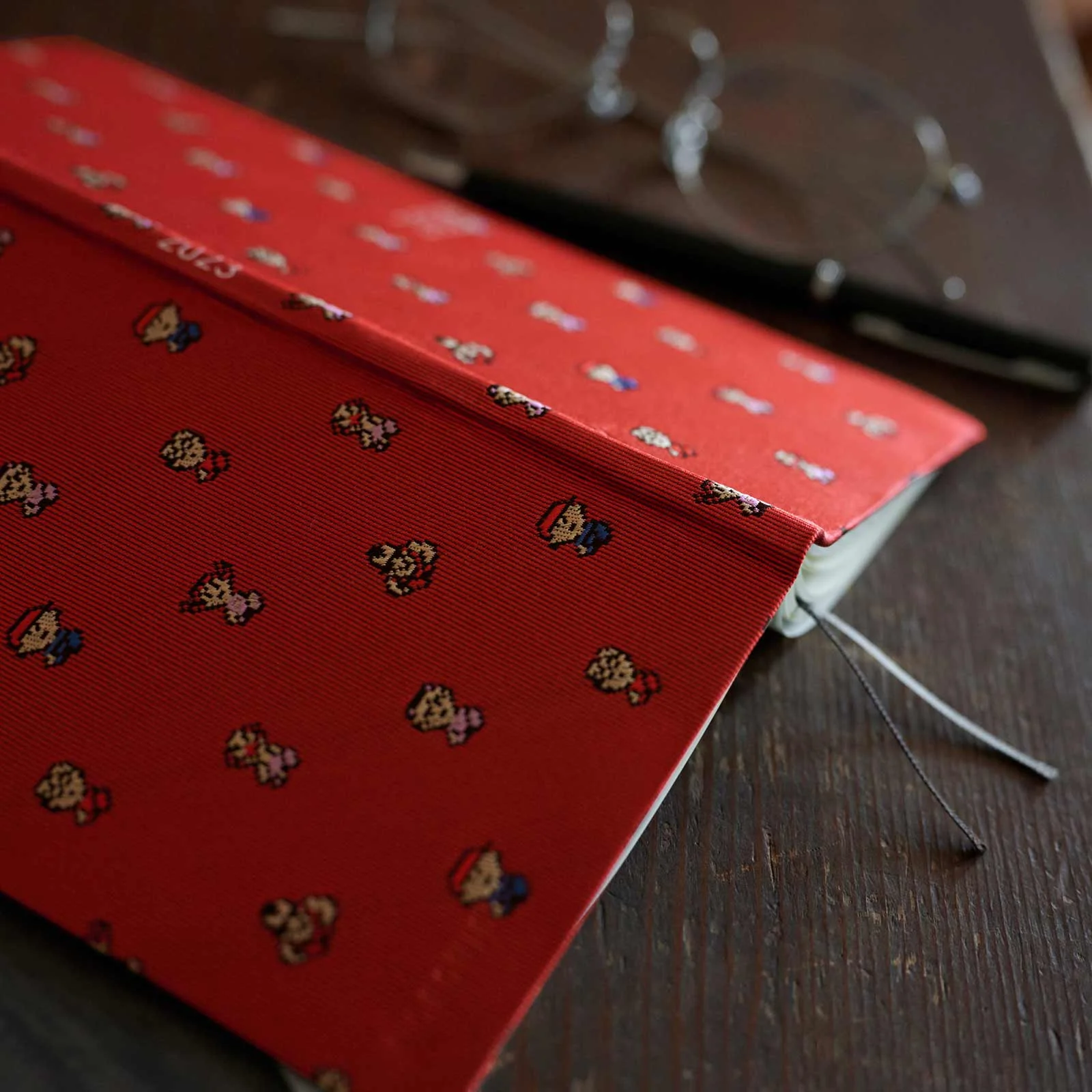 My Friends is made from the same fabric used in neckties. The cover is deep red and finely embroidered with characters from the first installment of the MOTHER series, including the main character Ninten and the other characters he befriends on his adventure: Loid, who is shy but smart; Ana, who is kind and has mysterious powers; and Teddy, a ruthless gang leader who was kind as a boy.