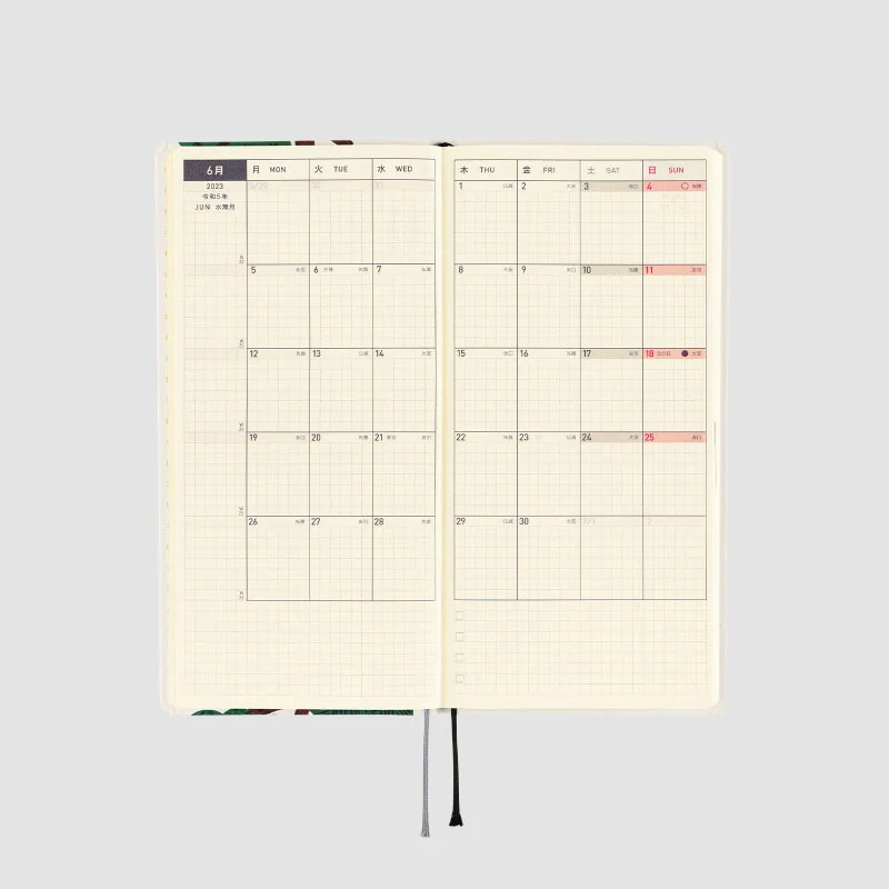 | Paper Type / Binding | Thin, light Tomoe River paper resistant to bleeding and designed for planners / Stitch-binding |