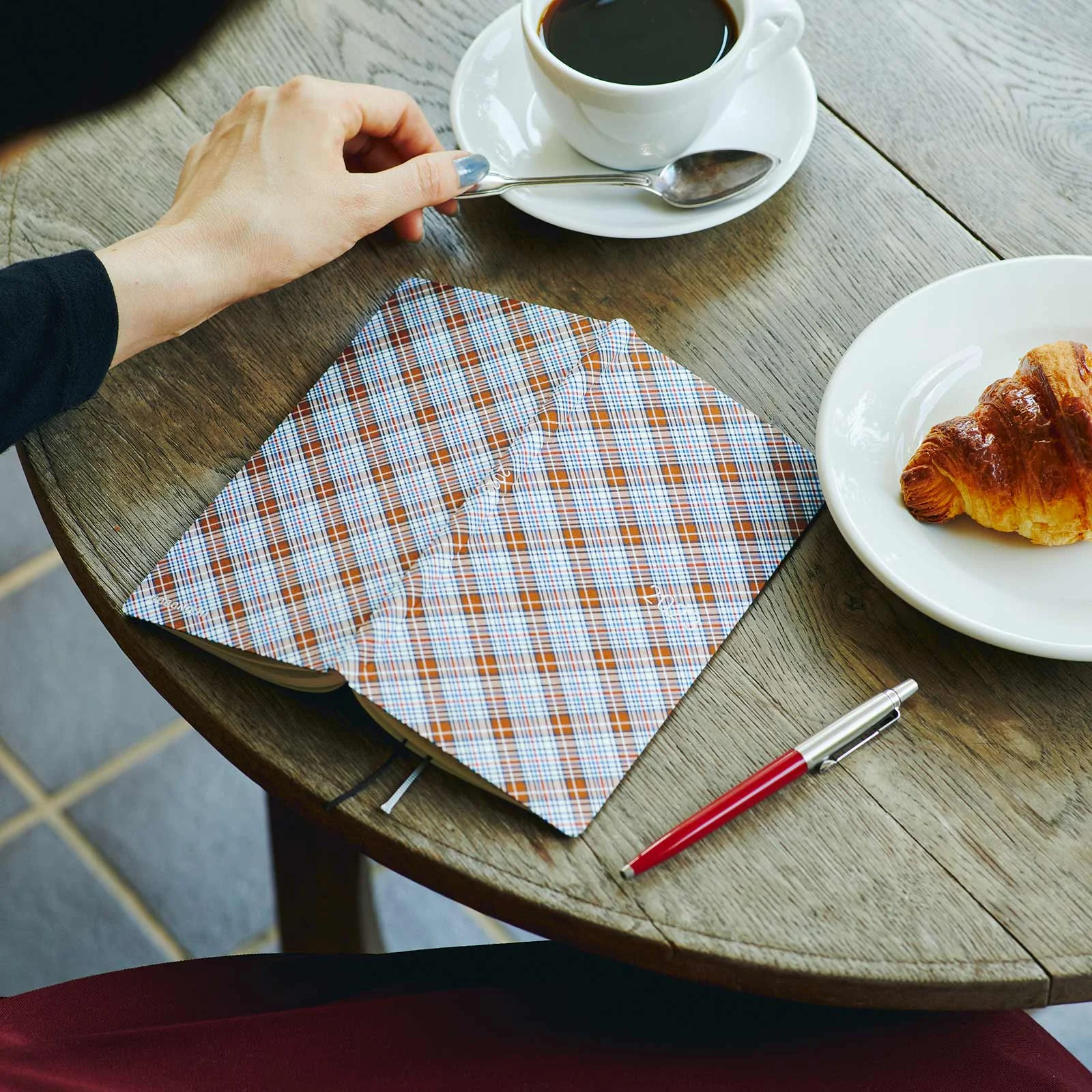 This basic plaid design is unaffected by fads, but still provides a Weeks book with a playful feel.