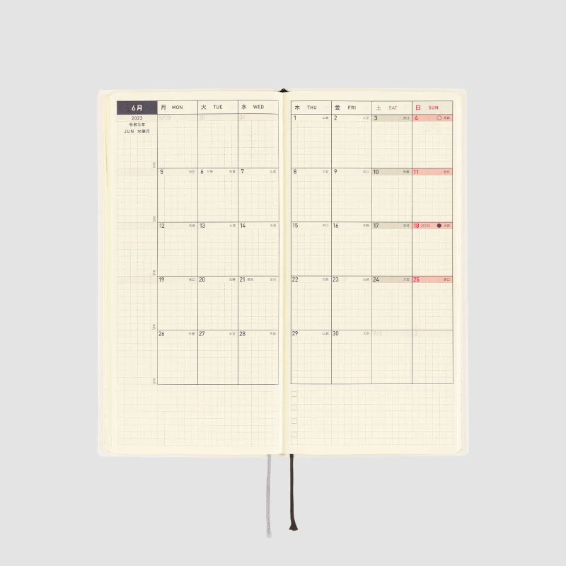 | Bonus Pages | Shorthand Note-Taking / Using Common Items to Measure Size / My 100 / Solar Terms / My Favorite Things / How to Better Enjoy Conversation / Emergency Preparedness / Age Table / Conversion Chart / Getting the most of Hobonichi / Contact List / Personal Notes |