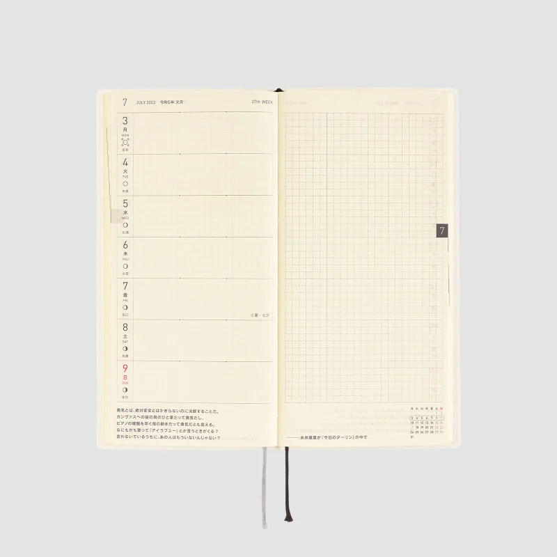 | Paper Type / Binding | Thin, light Tomoe River paper resistant to bleeding and designed for planners / Stitch-binding |