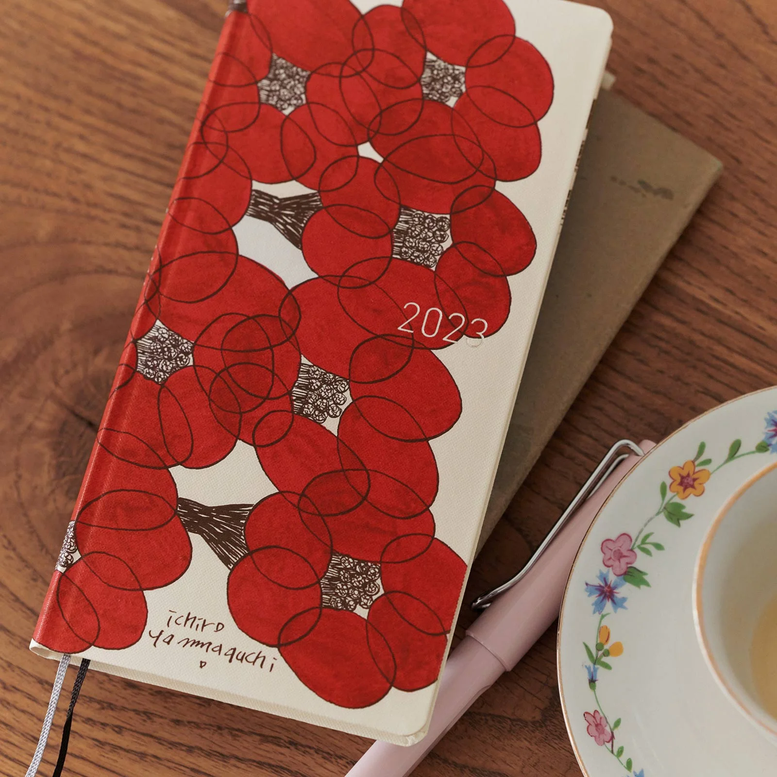 This striking cover features artwork of a large red bouquet of flowers we commissioned from painter Ichiro Yamaguchi especially for the Hobonichi Techo.