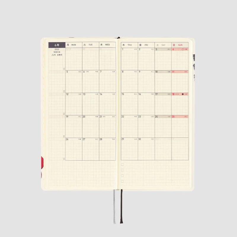 | Paper Type / Binding | Thin, light Tomoe River paper resistant to bleeding and designed for planners / Stitch-binding |