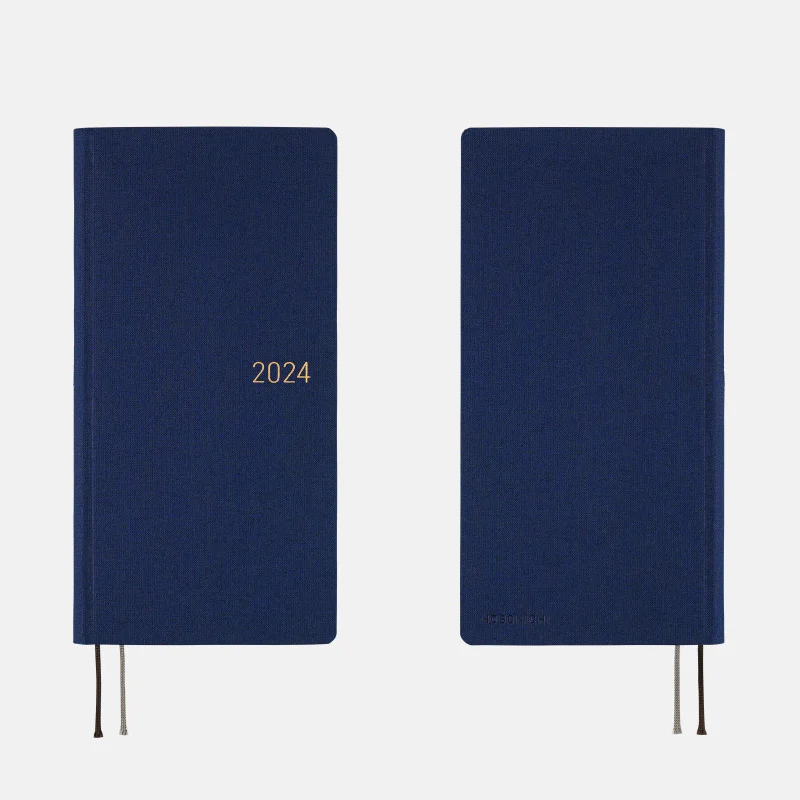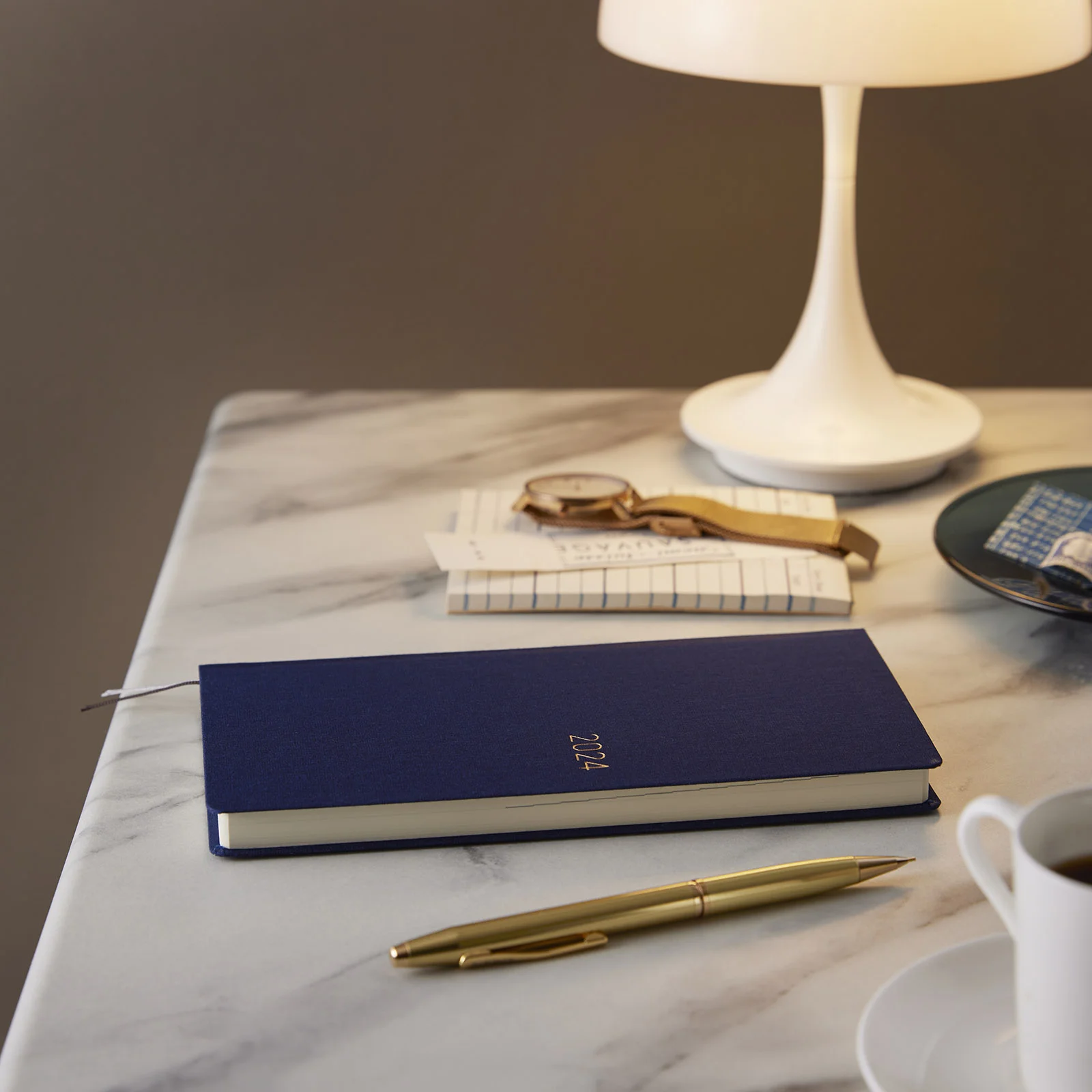 Deep Navy is navy in a deep tone, as the name suggests. The year 2024 on the cover is foil-pressed in gold, which shines in the light. The subtle color can also be used on any occasion and for work.