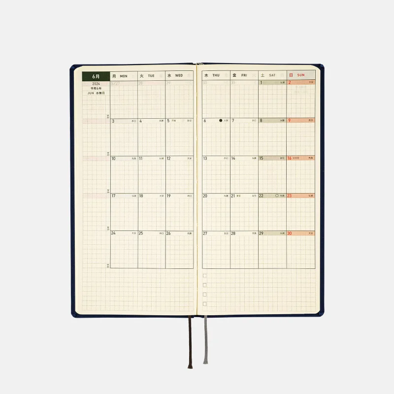 | Paper Type / Binding | Thin, light Tomoe River paper resistant to bleeding and designed for planners / Stitch-binding |