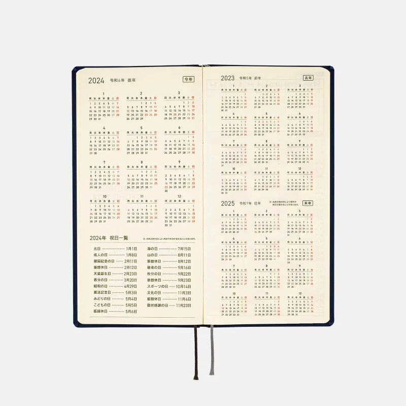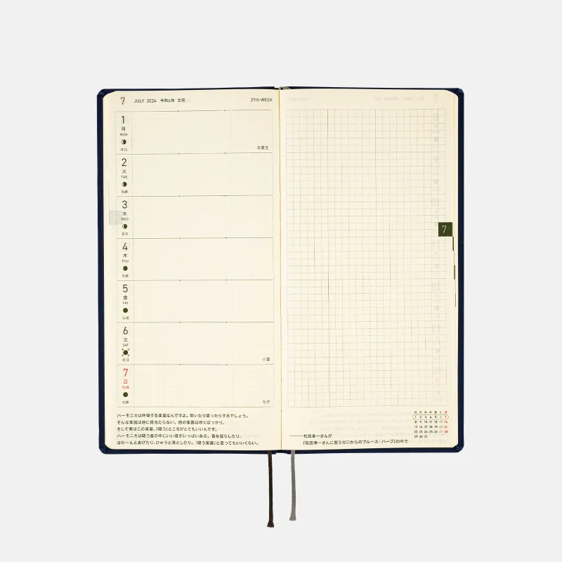 | Listed Information | Week of the year / Rokuyo (traditional Japanese calendar) / Solar terms / Japanese holidays / Moon phase (weekly pages include every phase, monthly calendars only include full and new moon) |