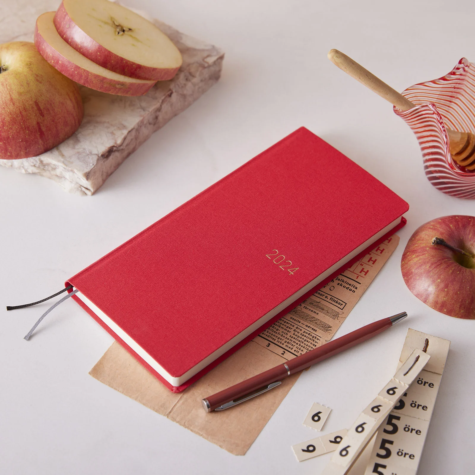 Sweet Apple is a red techo with a bright color that catches the eye. The year 2024 foil-pressed in gold on the cover shines in the light. The motivating red color is perfect for those starting a new challenge.
