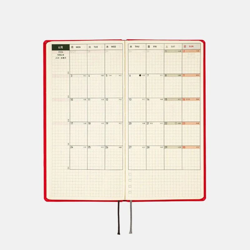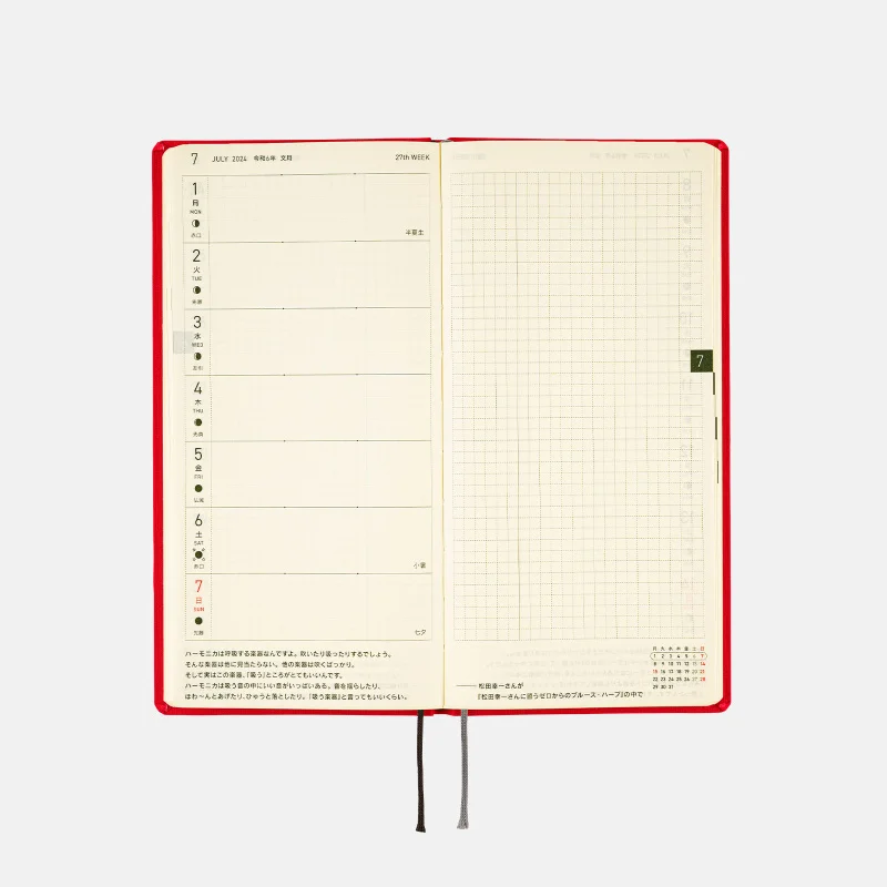 | Paper Type / Binding | Thin, light Tomoe River paper resistant to bleeding and designed for planners / Stitch-binding |