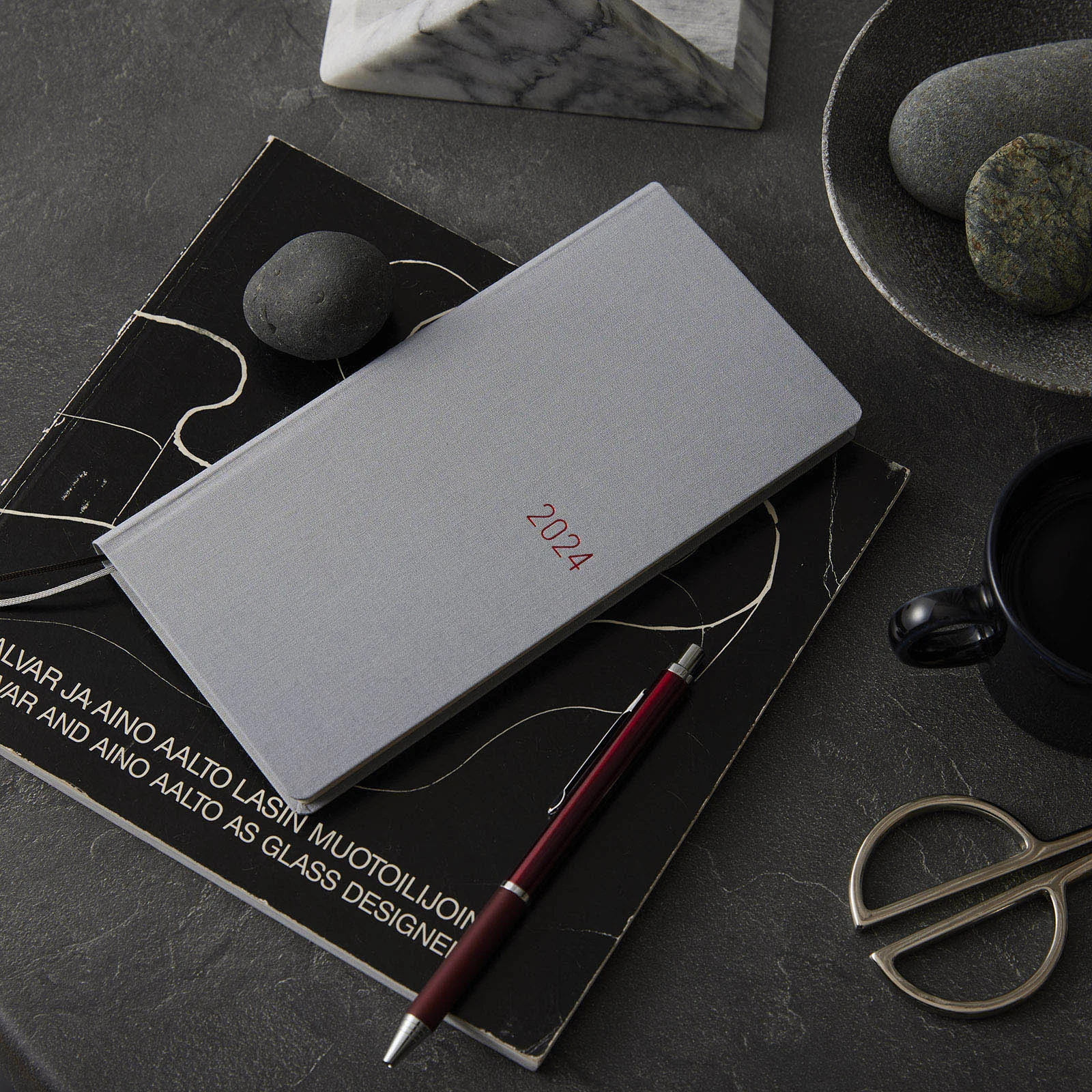 Stylish Gray is the Colors series’ first light gray Weeks book. The year 2024 is foil-pressed in metallic red, which sparkles in the light. The modern atmosphere would make the user look stylish, just like the techo.