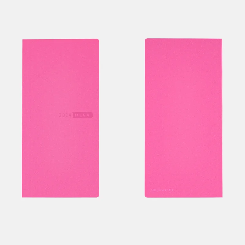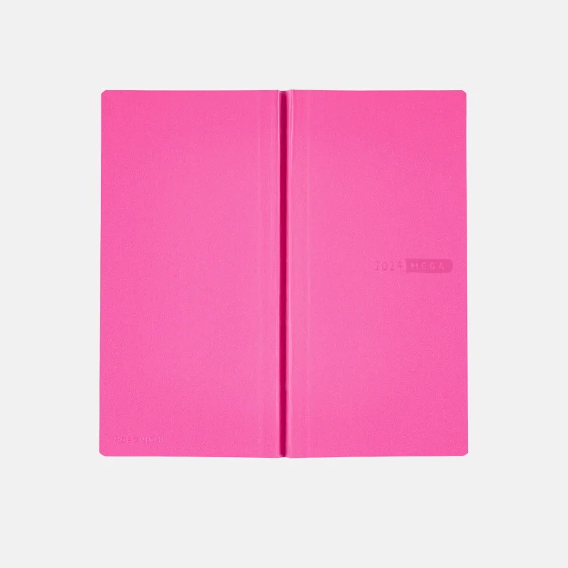 Raspberry features a vivid, hot pink color that will energize you by just having it by your side. The year 2024 and the Mega logo are printed on the cover in puffy letters.