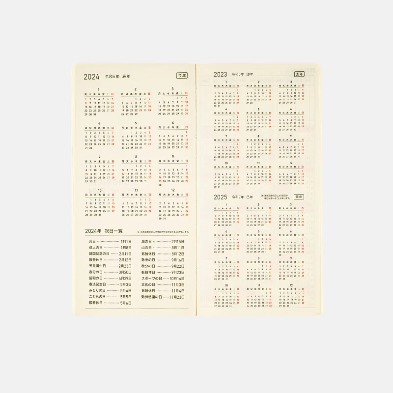 | Bonus Pages | Shorthand Note-Taking / Using Common Items to Measure Size / My 100 / An Interview with Myself / Seasonal Sweets to Make at Home / Solar Terms / Emergency Preparedness / Age Table / Conversion Chart / Getting the most of Hobonichi / Contact List / Personal Notes |